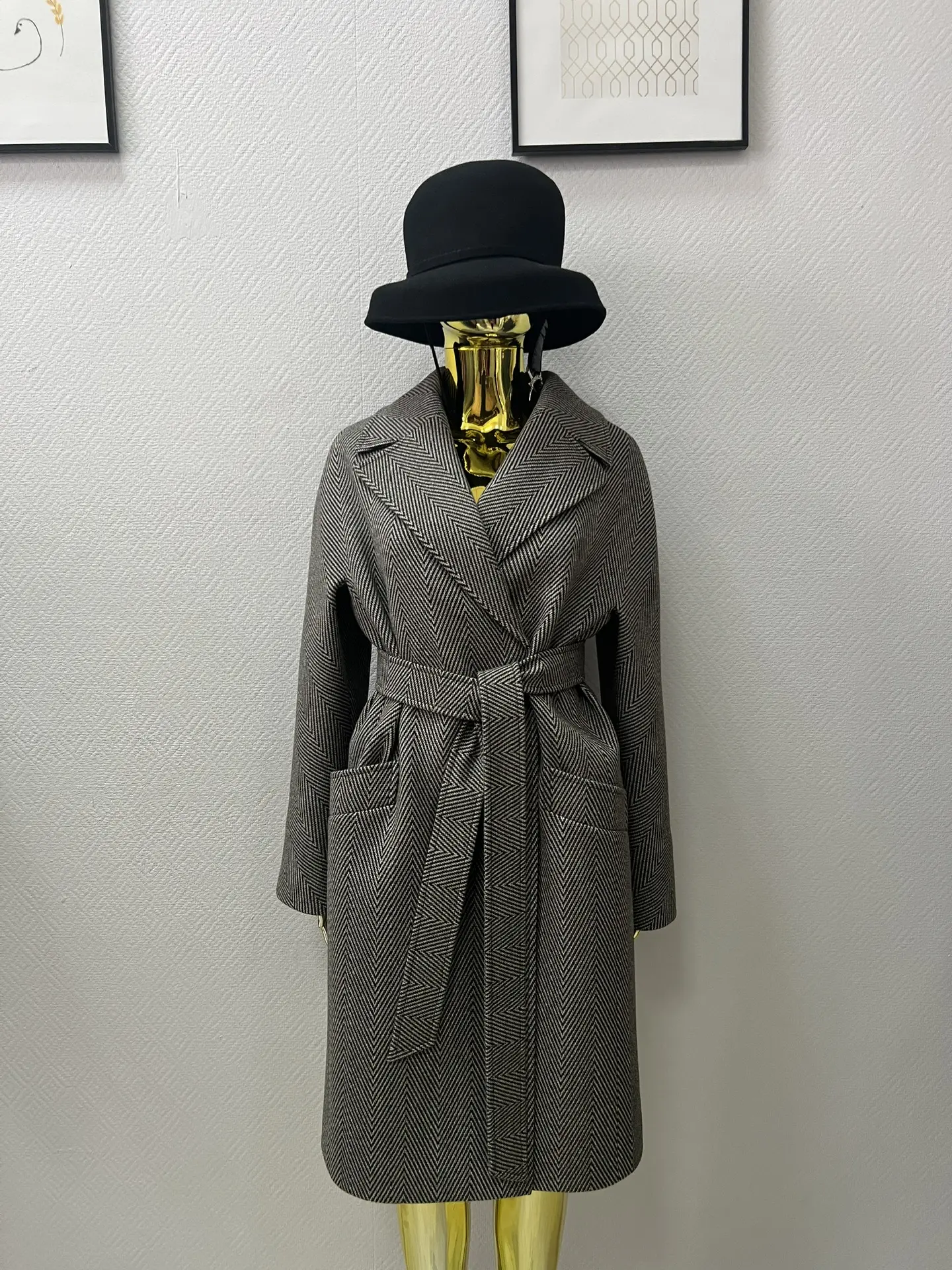 Пальто женское демисезонное 25885/к (коричневый/ёлочка)