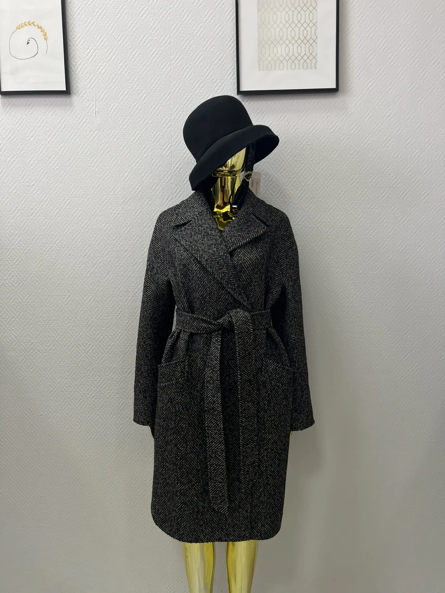 Пальто женское демисезонное 25885/к (черно-серый/ёлочка)