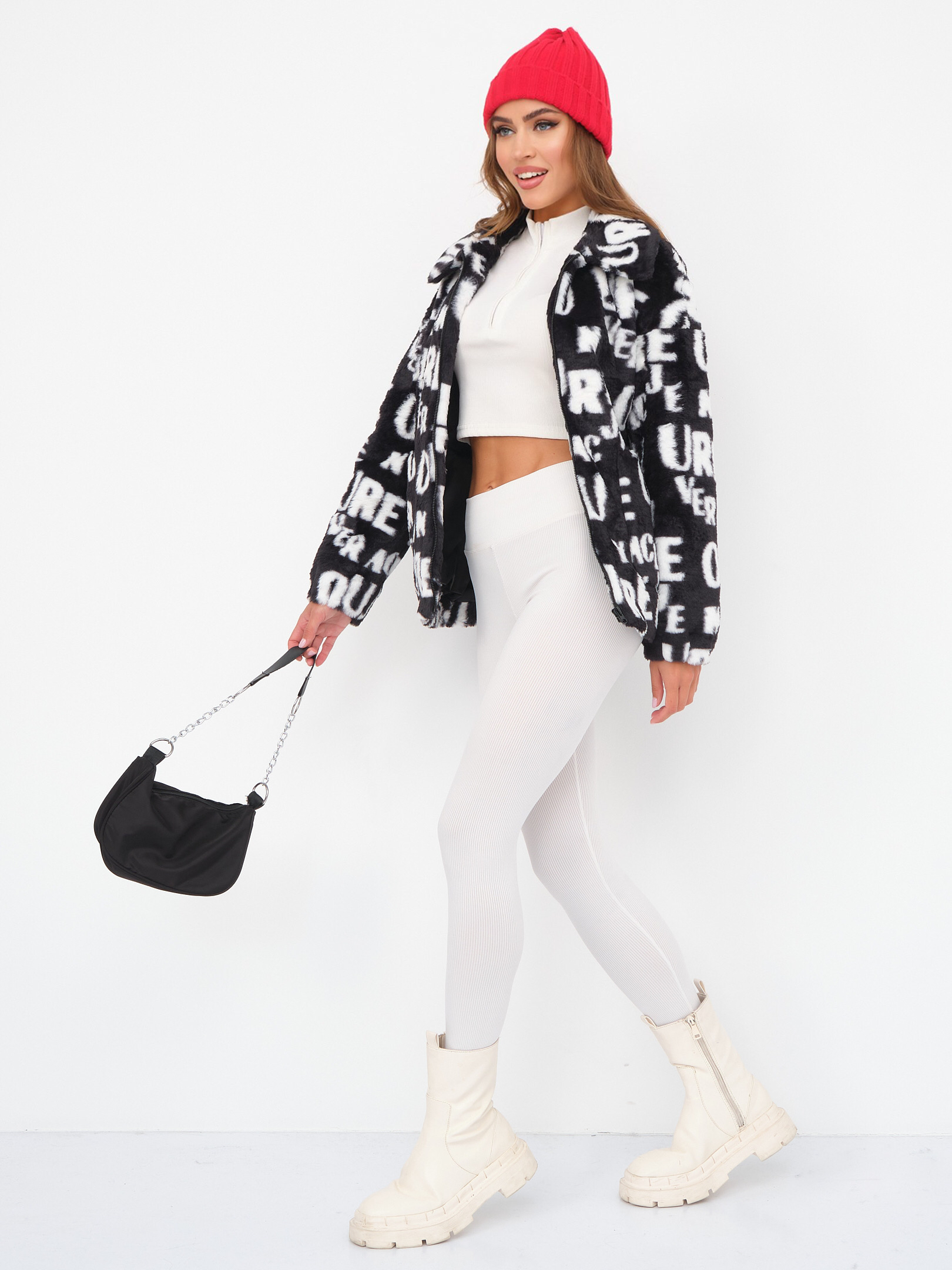 Шубка женская еврозима 22765 (черно-белый/буквы)