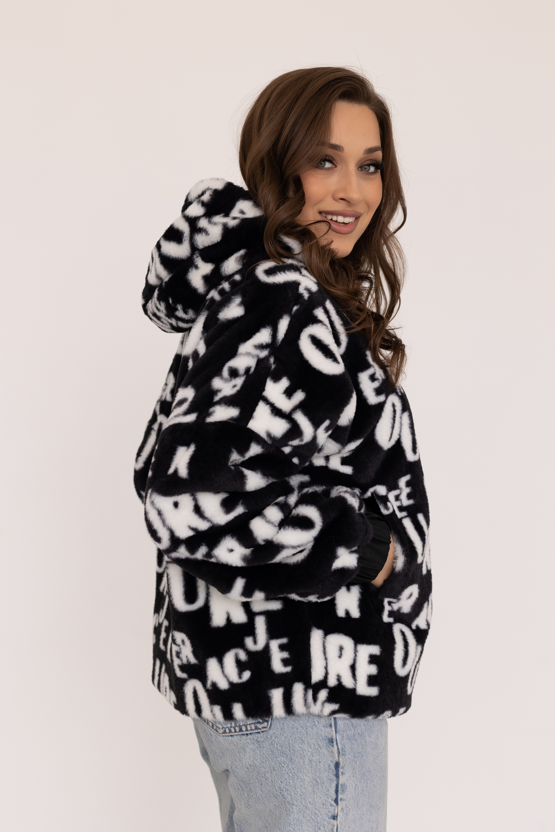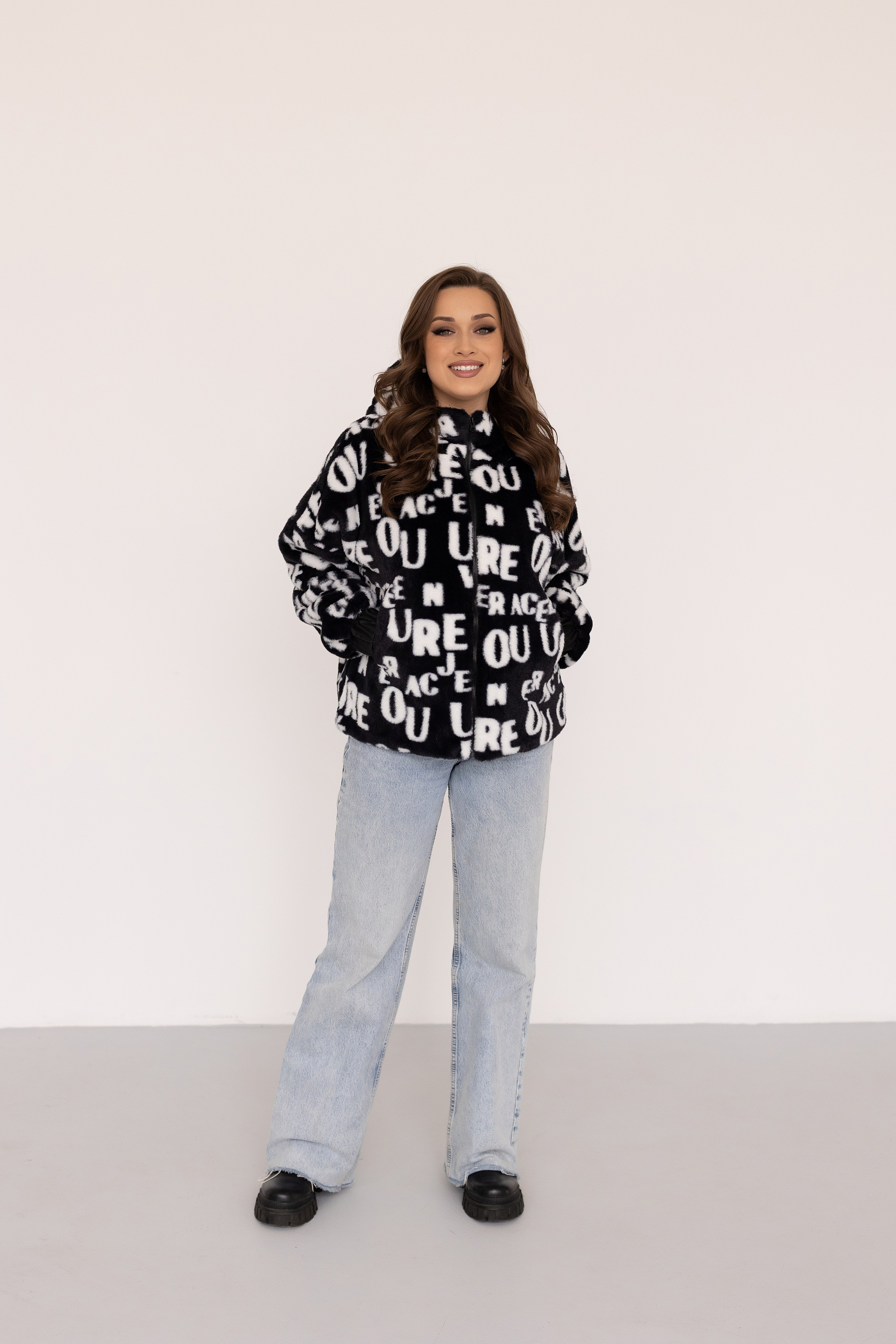 Шубка женская еврозима 24750 (черно-белый/буквы)