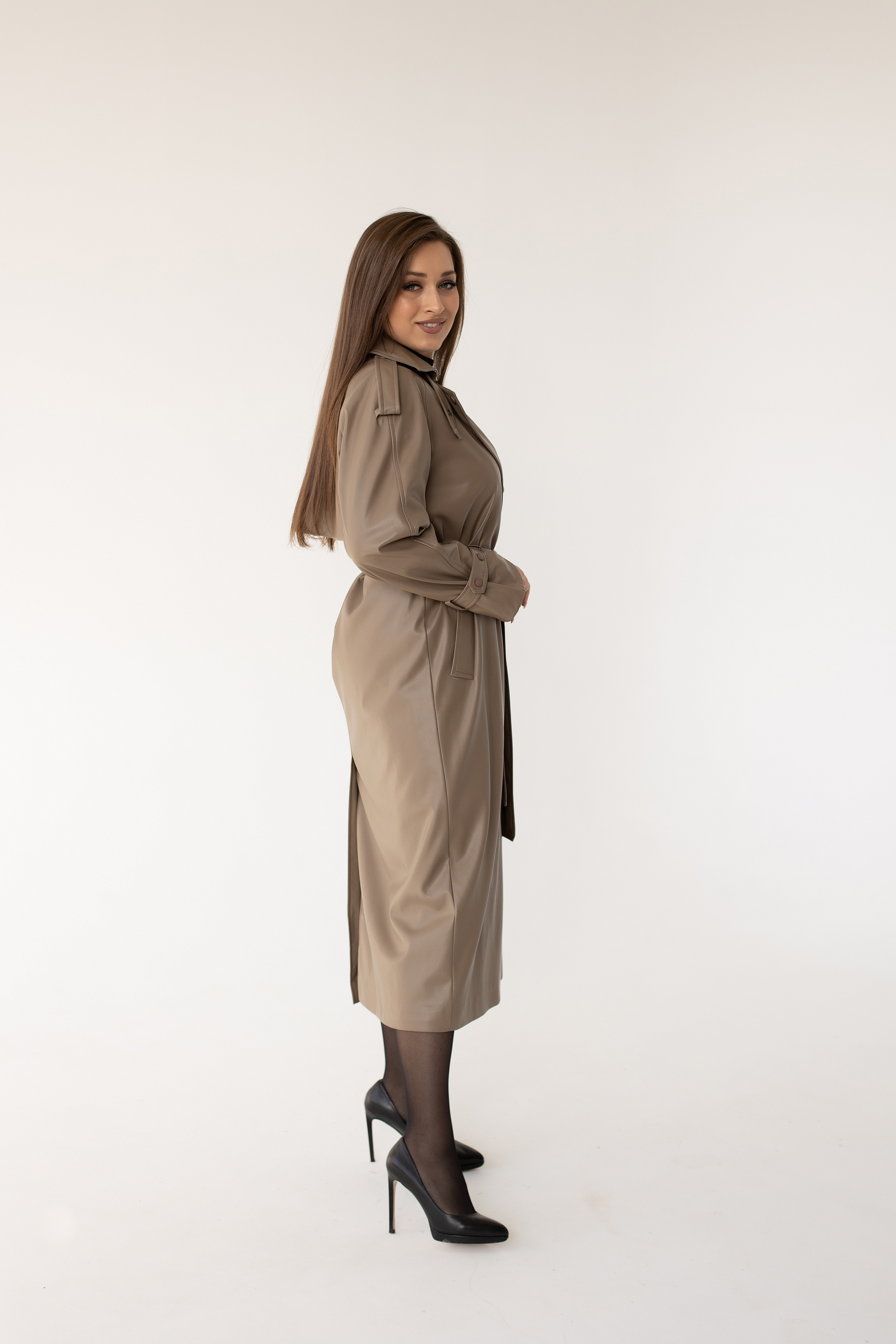 Плащ женский 1826 (бежевый/экокожа)