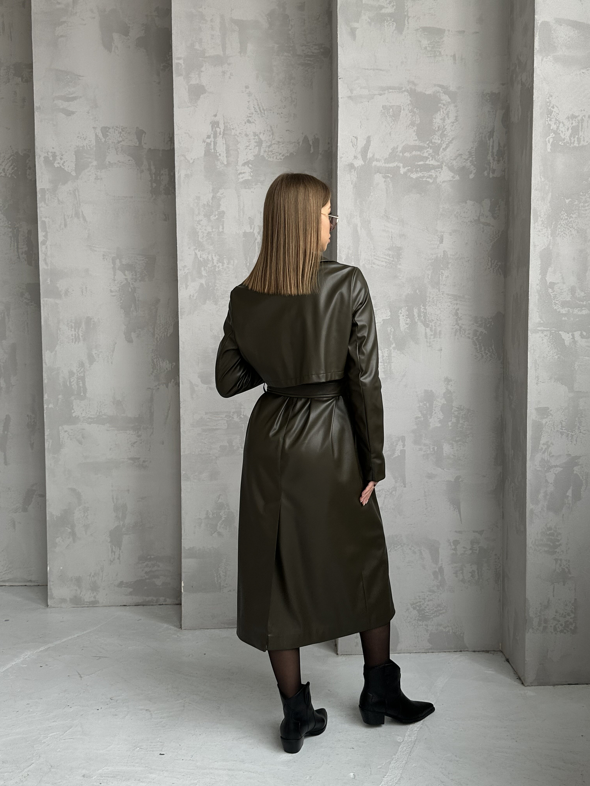 Плащ женский 1115 (хаки/экокожа)