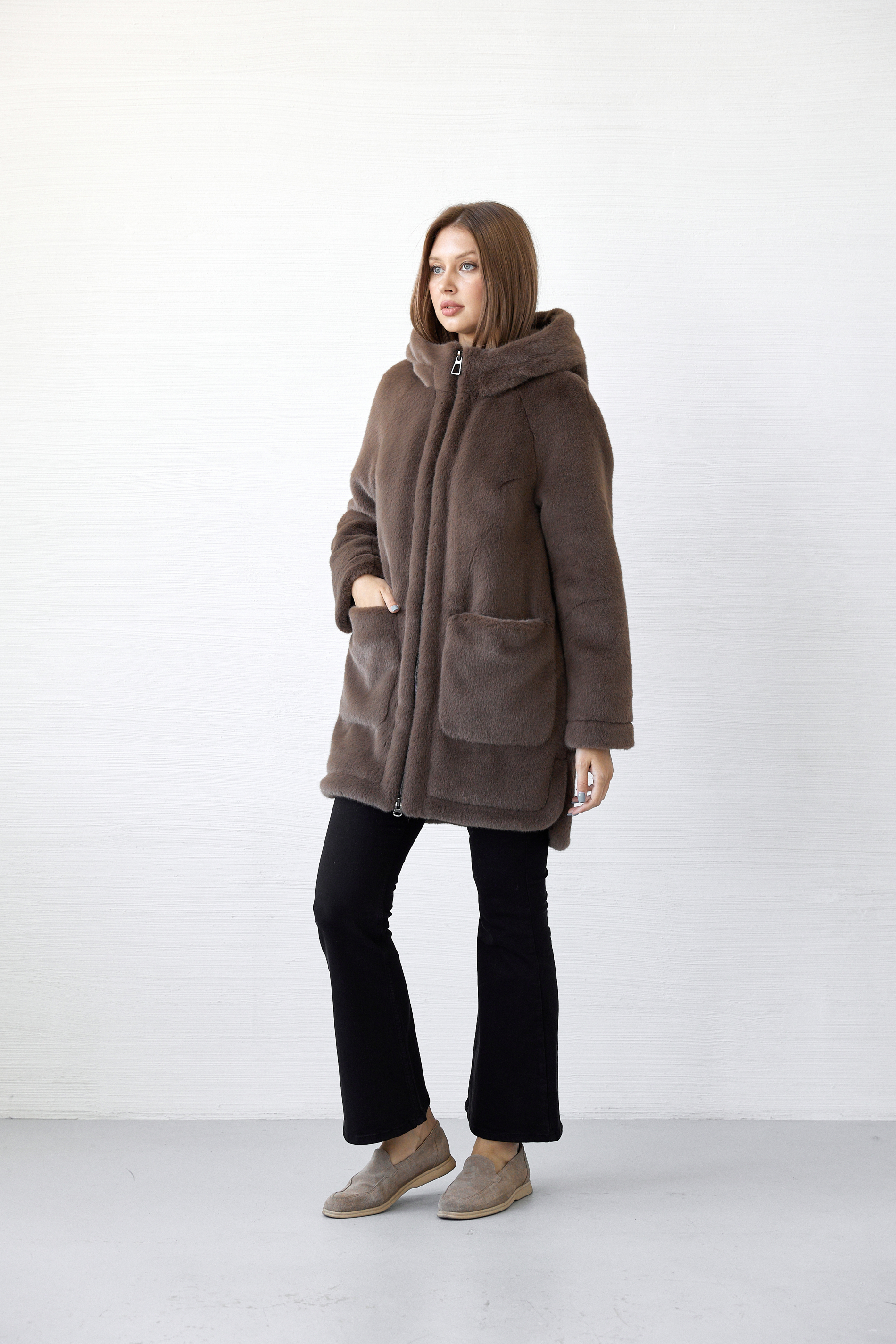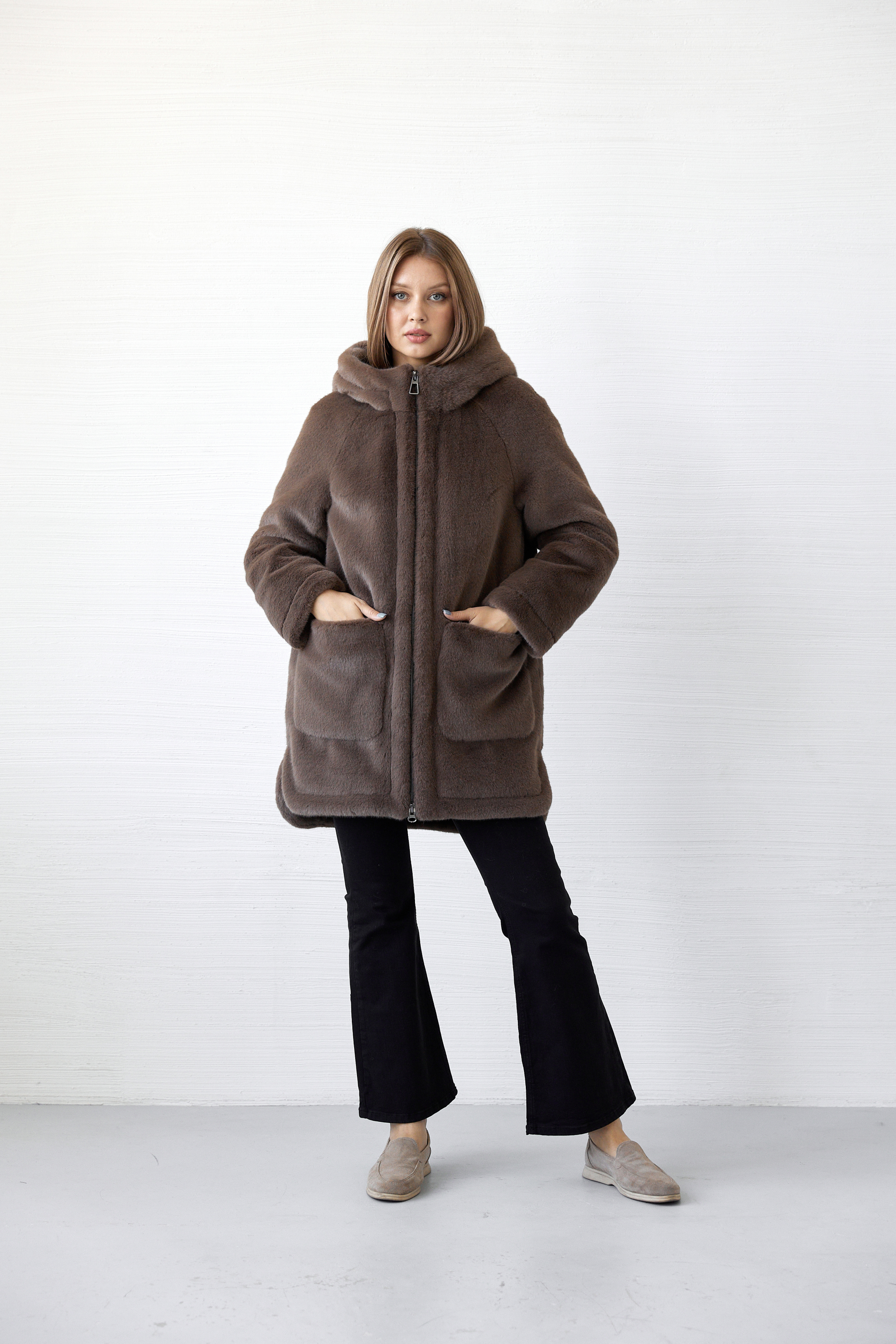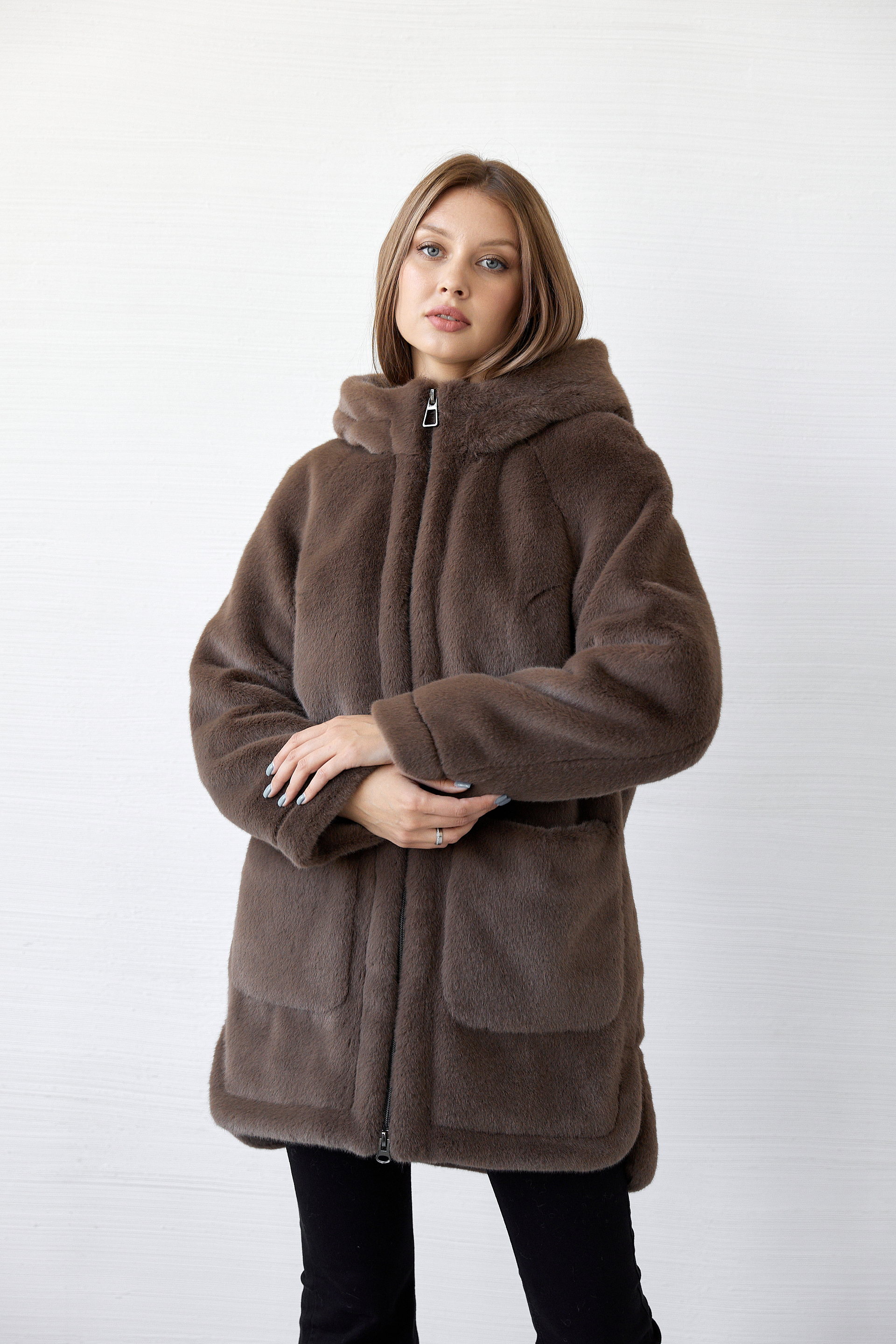 Шубка прямого силуэта,среднего объема.