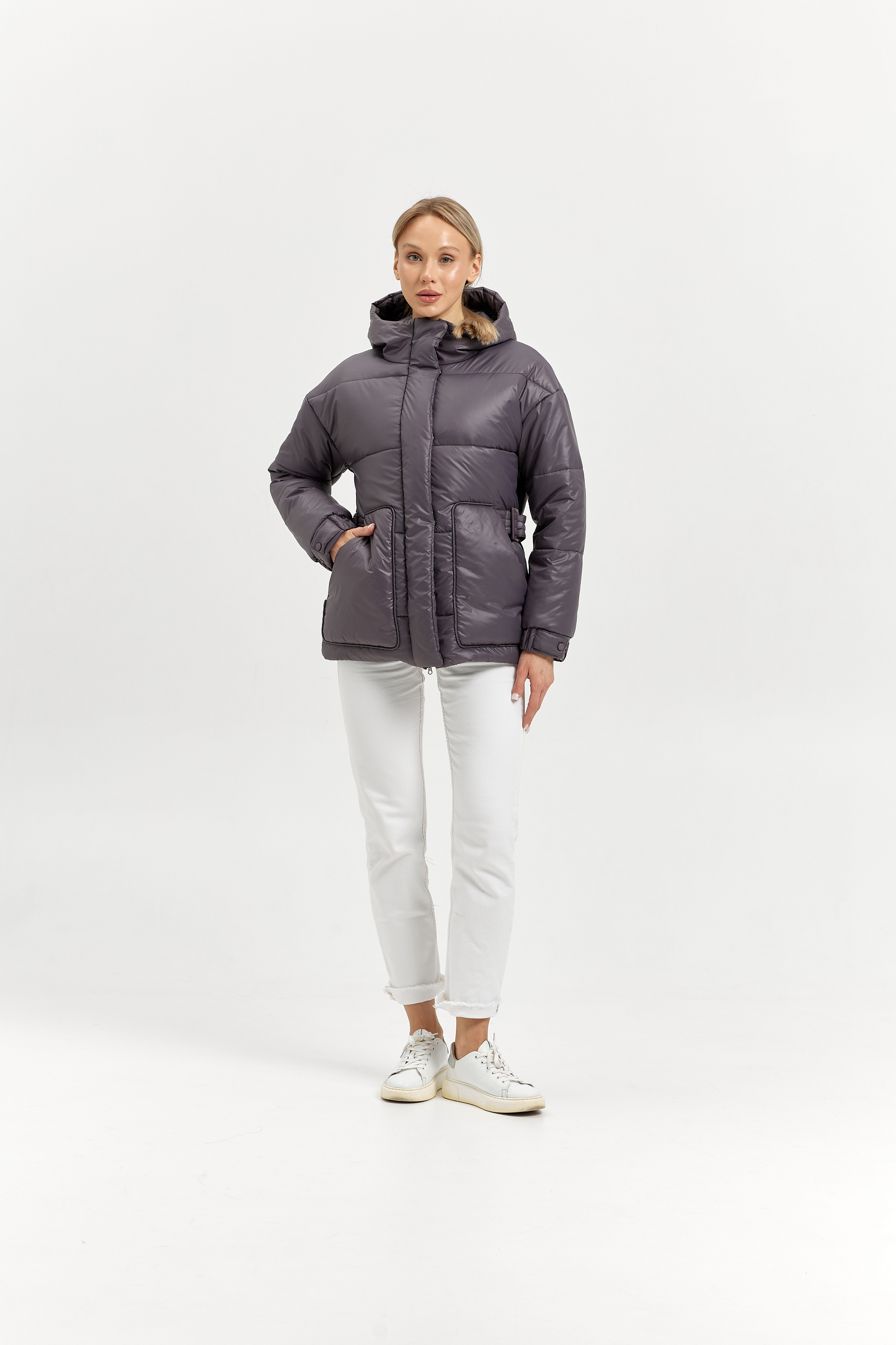 Пояс передний с пряжкой, выходит из-под кармана. Пояс спинки на кнопках регулирует объем талии.