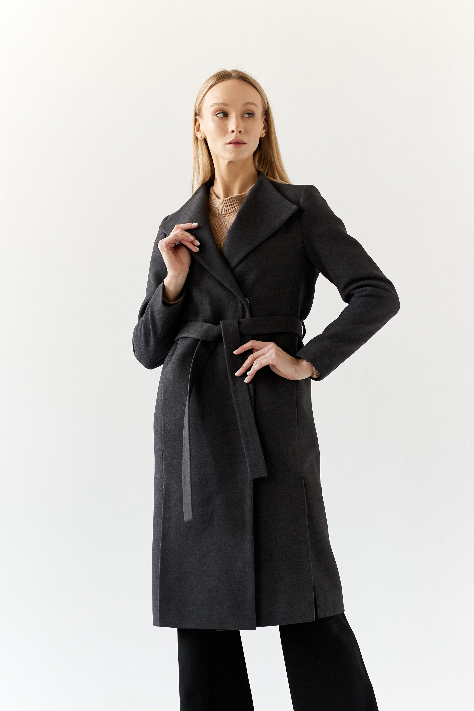 Пальто женское демисезонное 26117 (темно-серый)