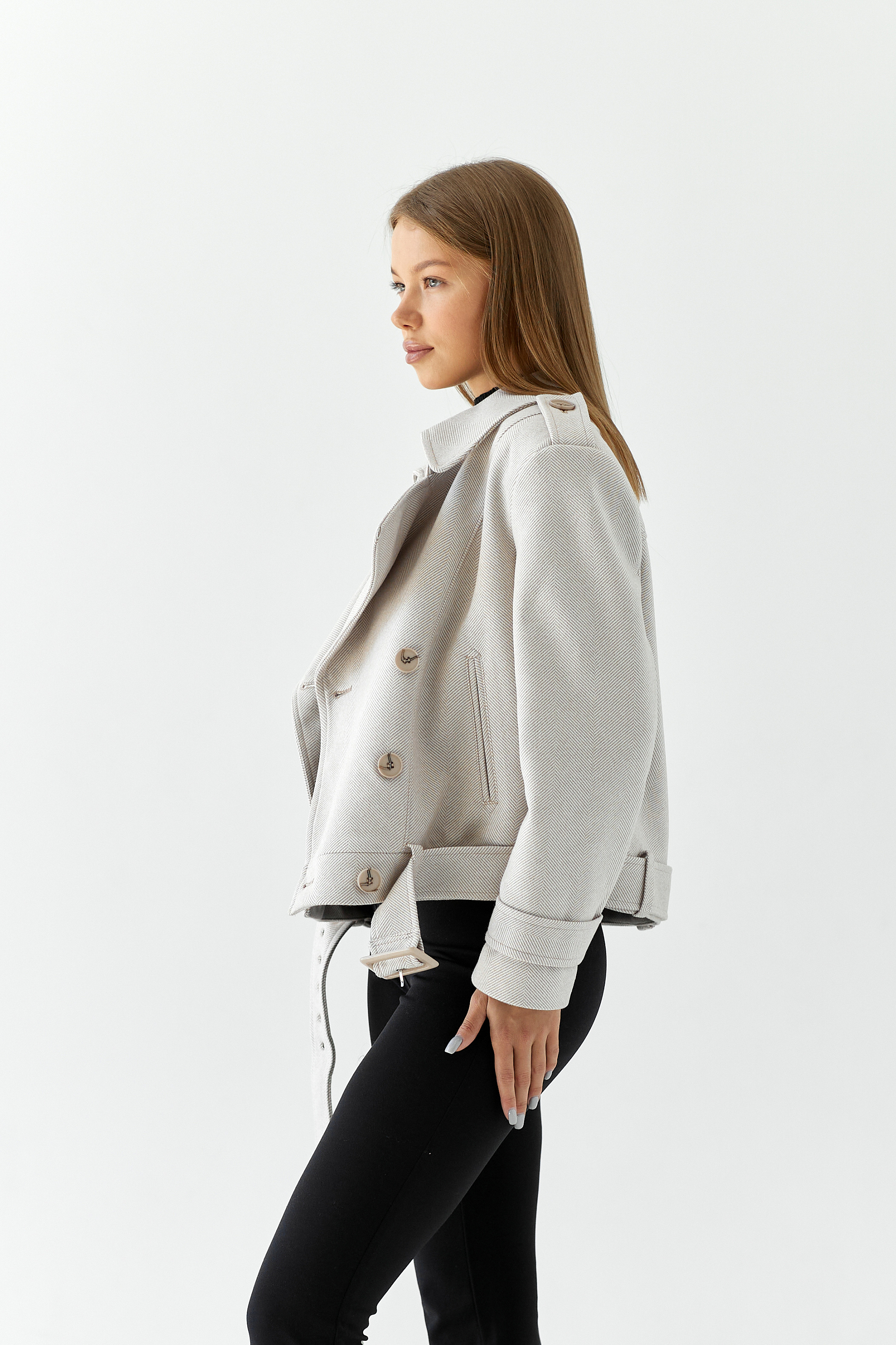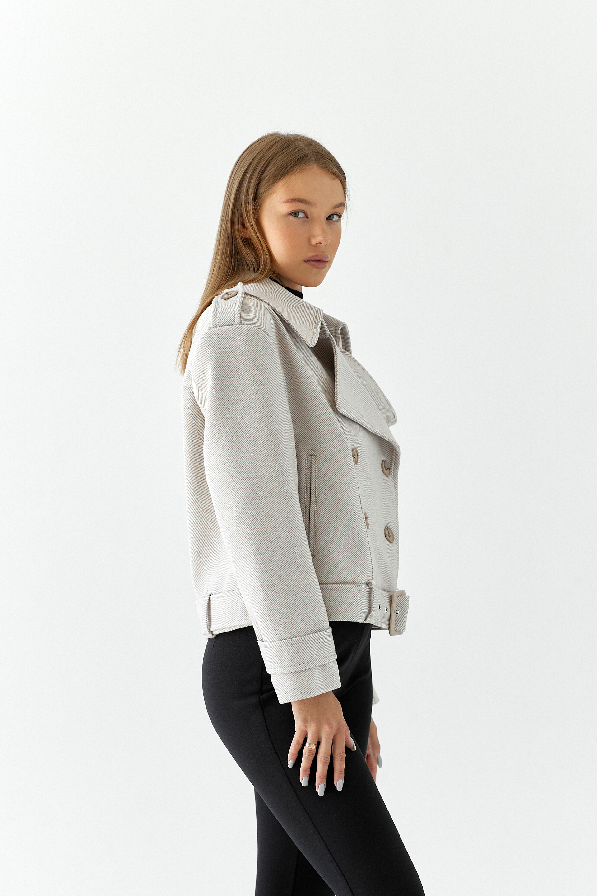 Полупальто женское демисезонное 25999 (бежевый/ёлочка)