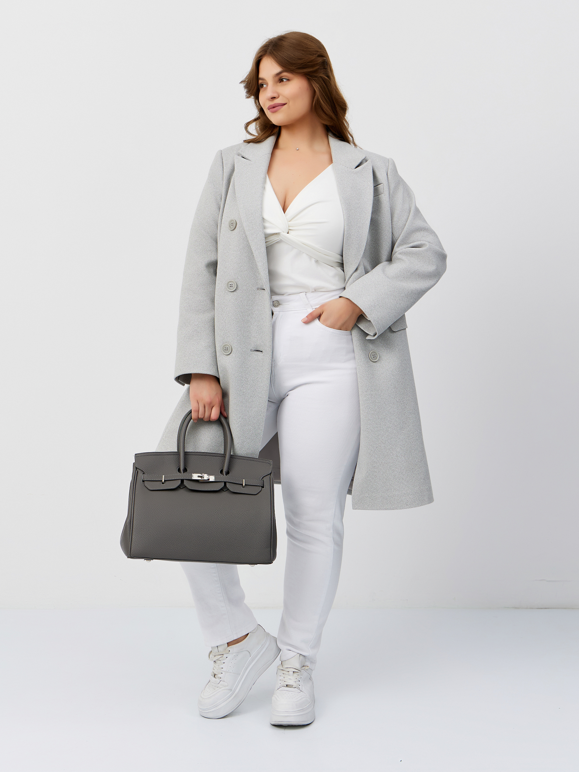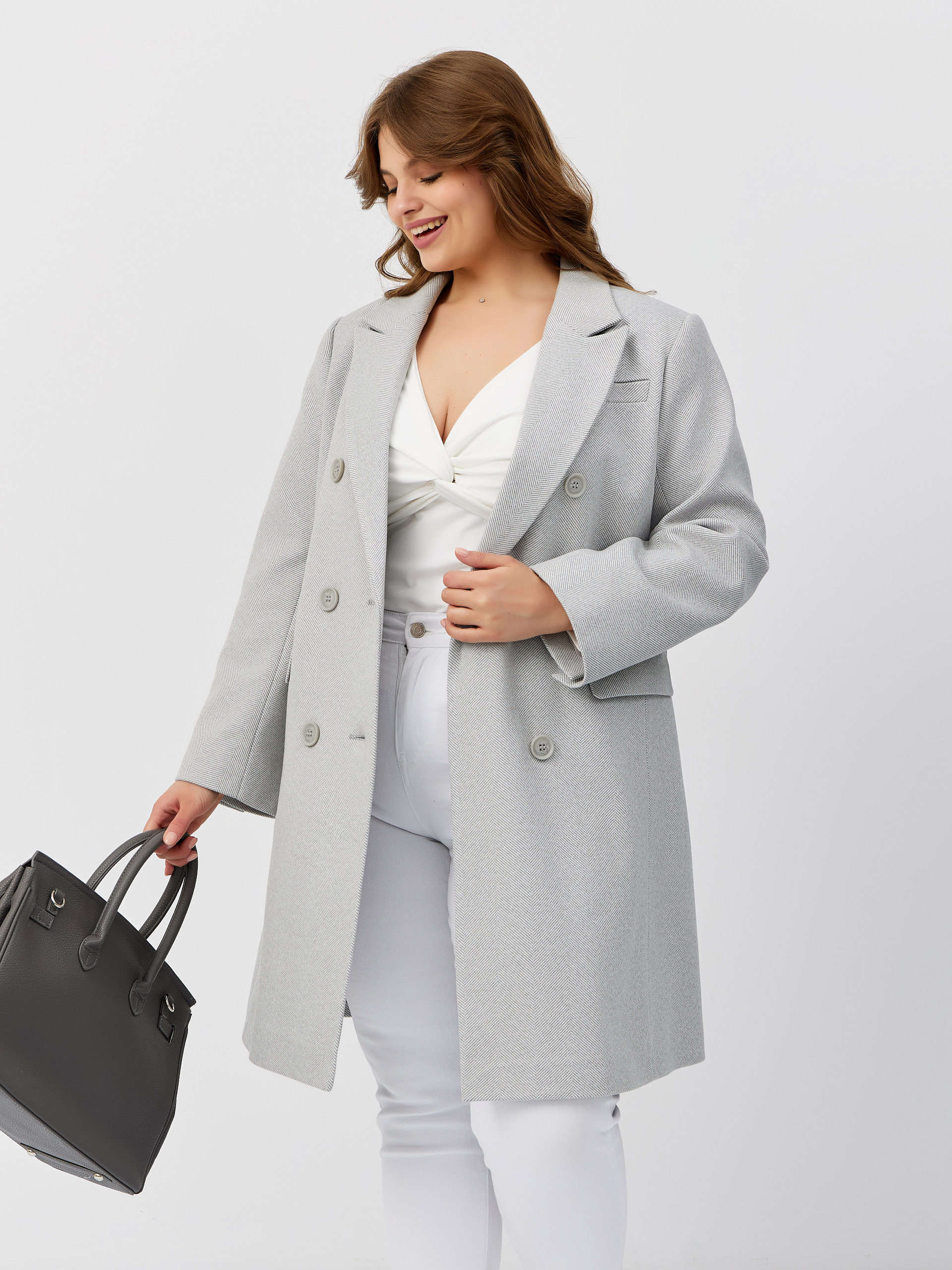 Пальто женское демисезонное 26897 (сильвер/ёлочка)