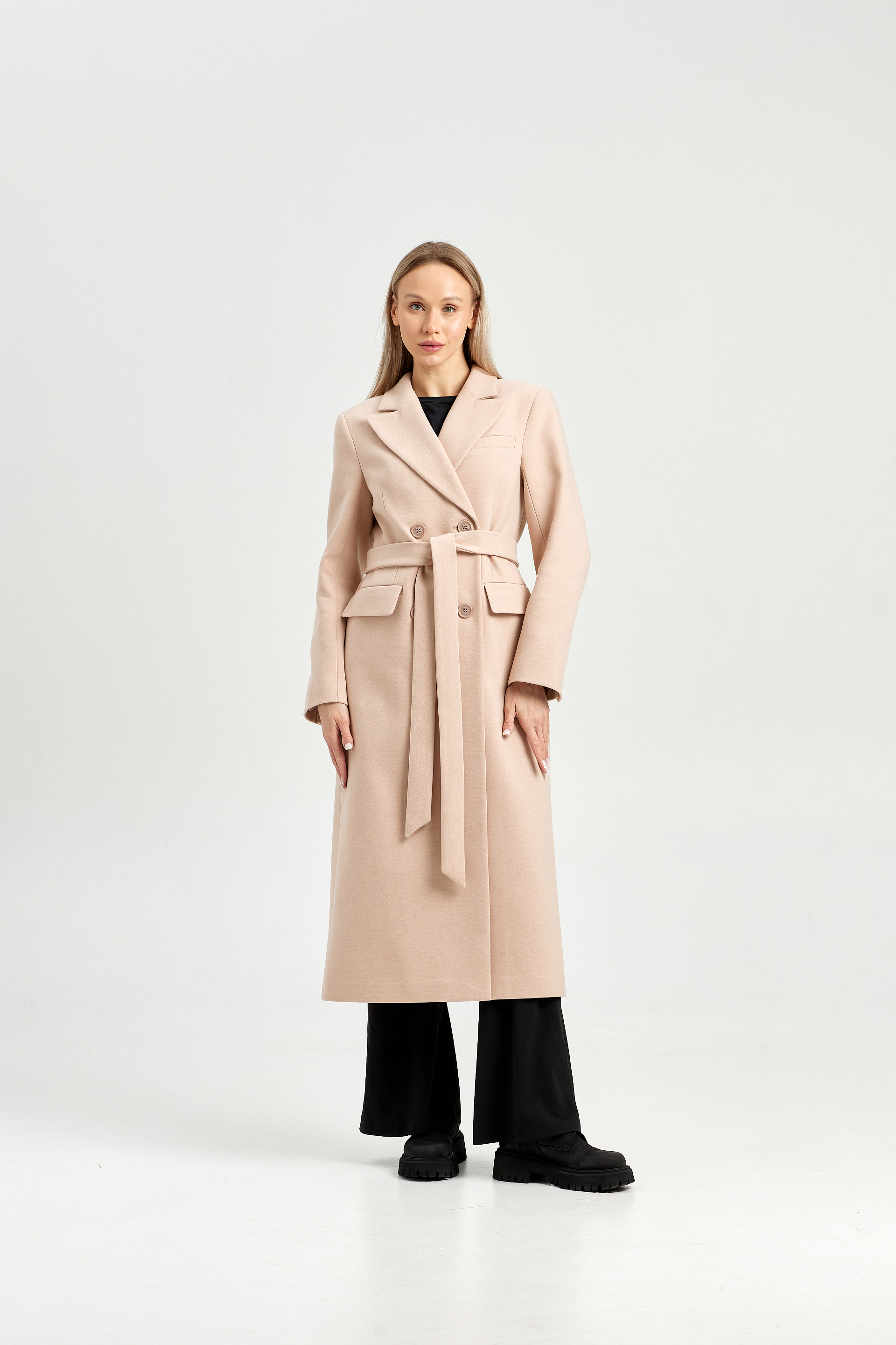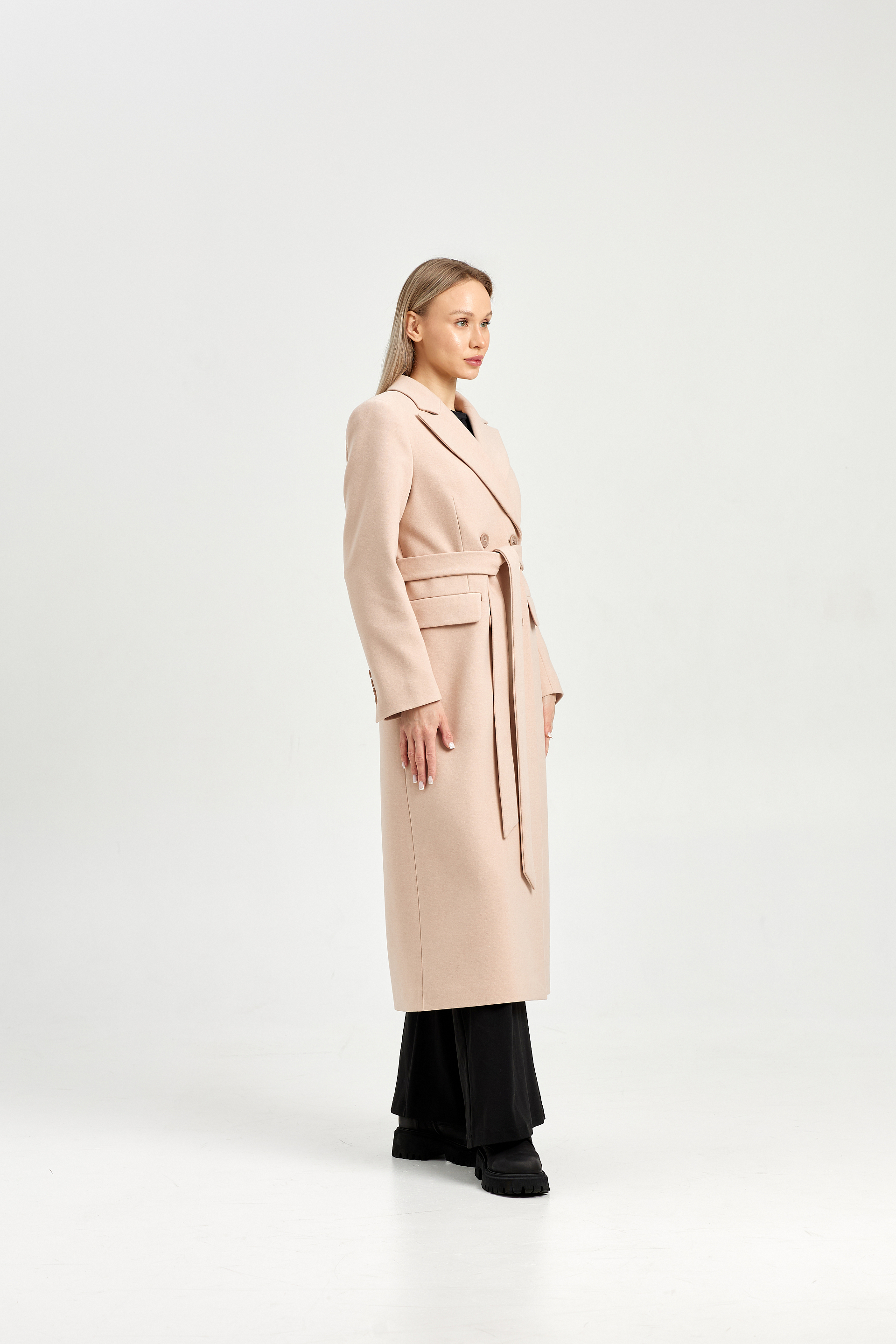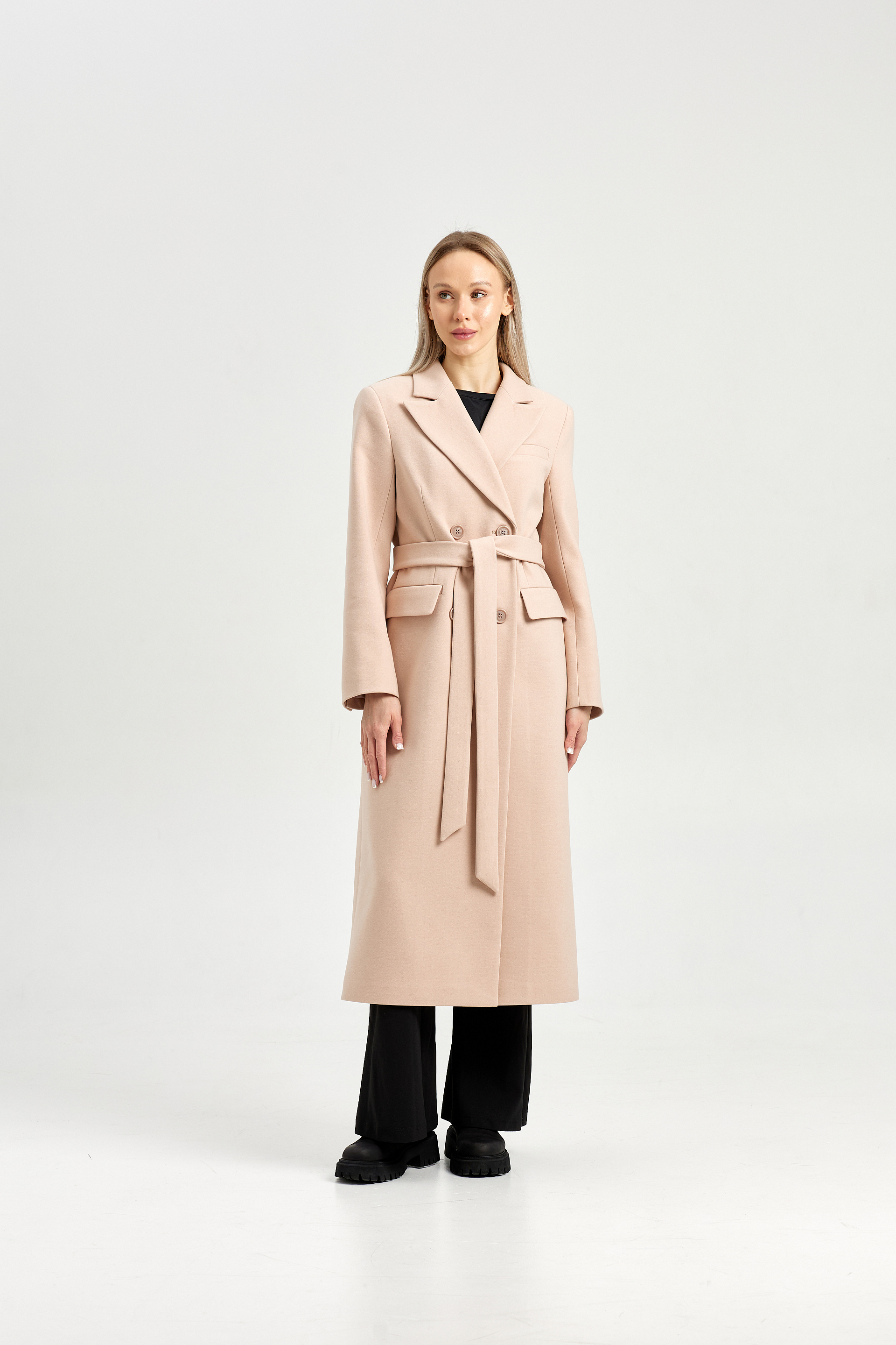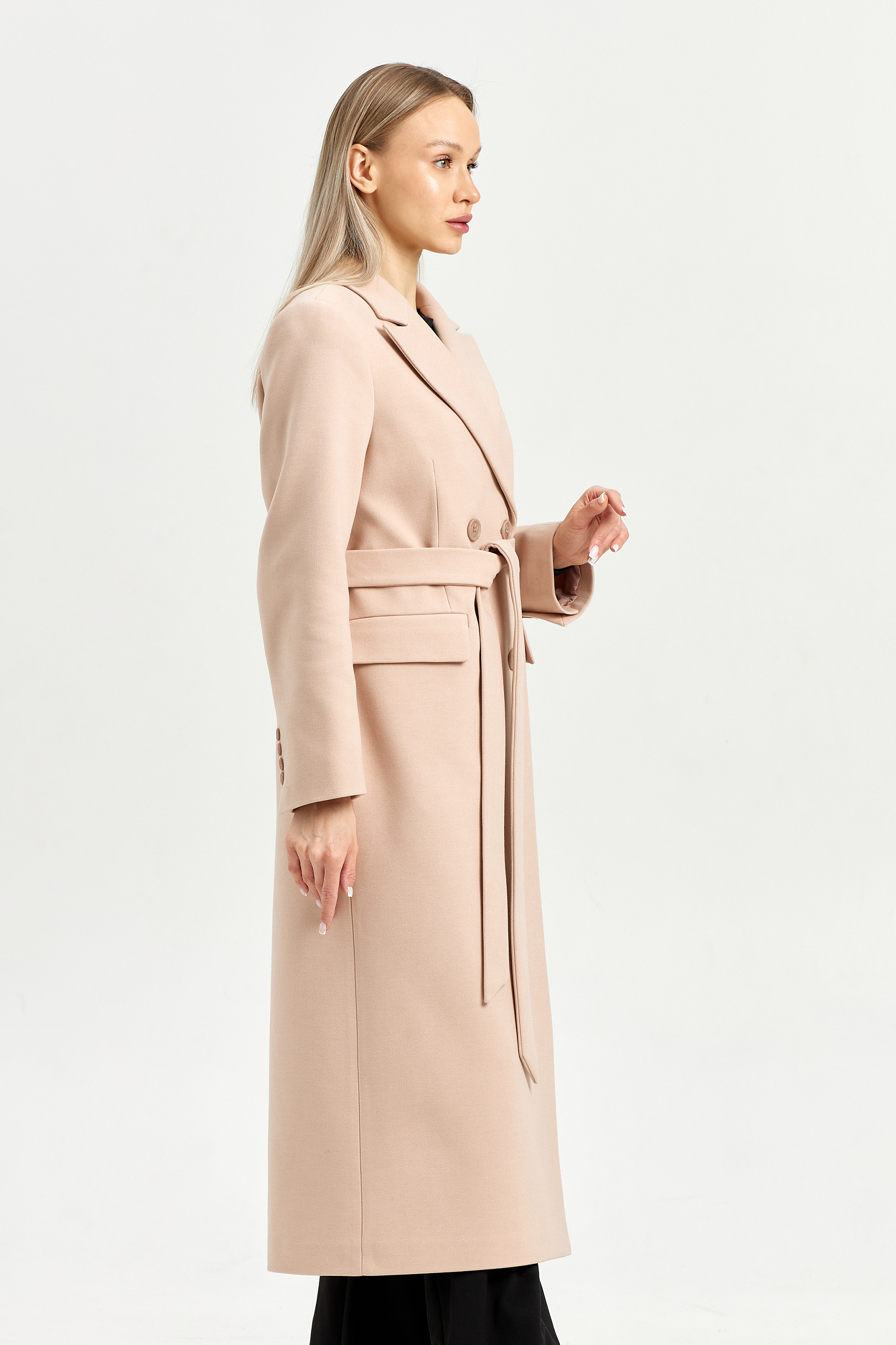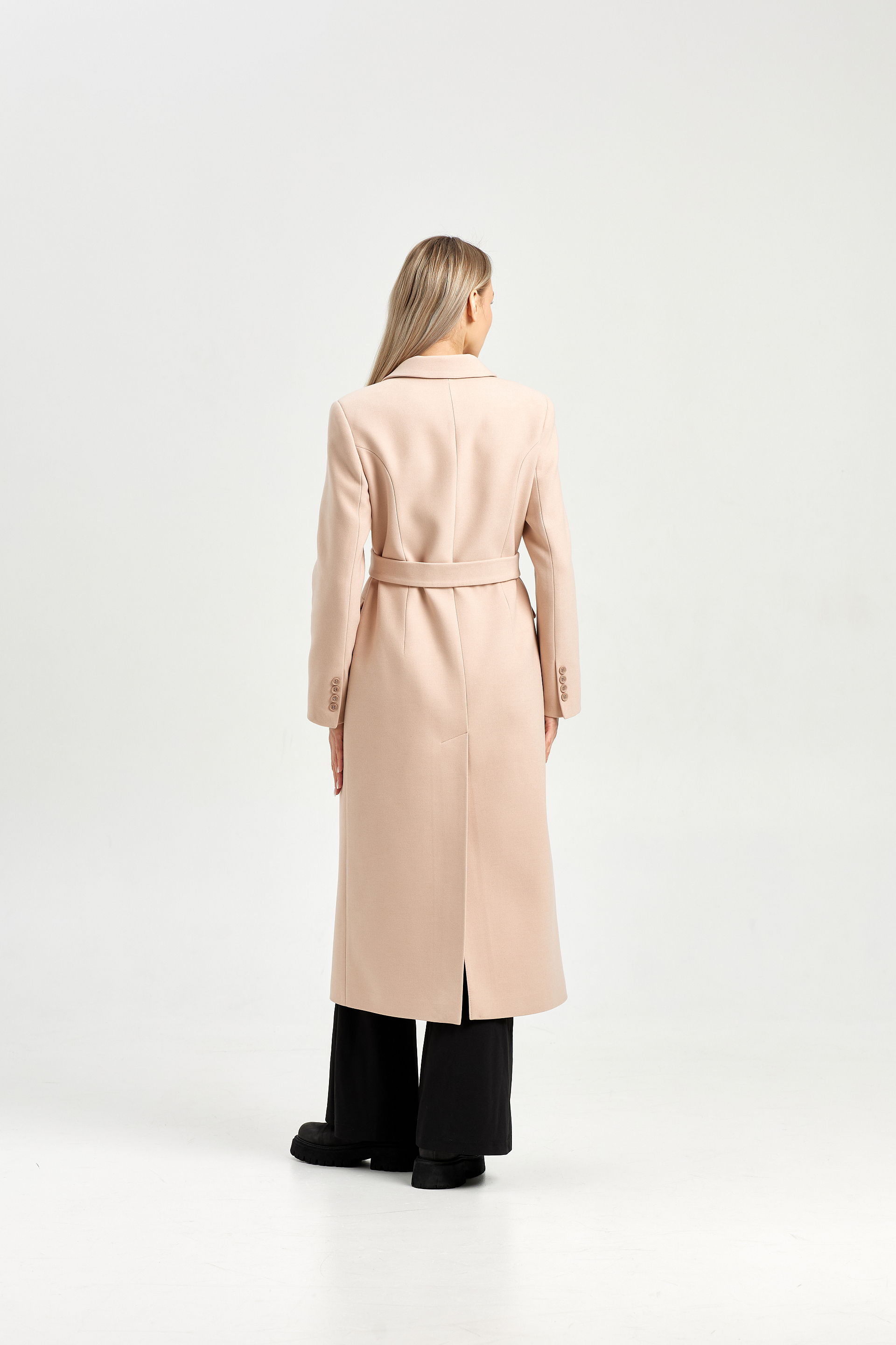 Пальто приталенного силуэта с втачным рукавом.