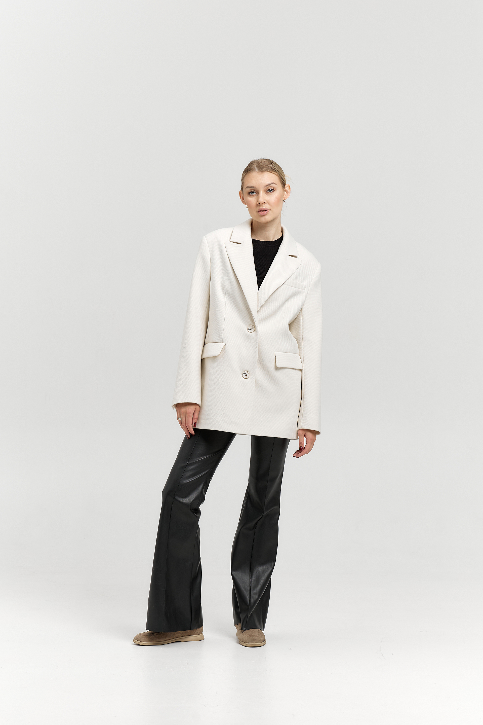 Силуэт - прямой с втачным рукавом.