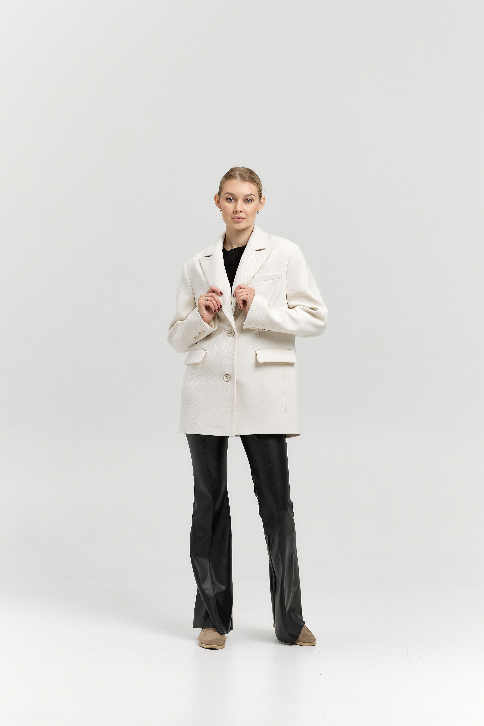 Пальто женское демисезонное 27100 (молочный/рубчик)