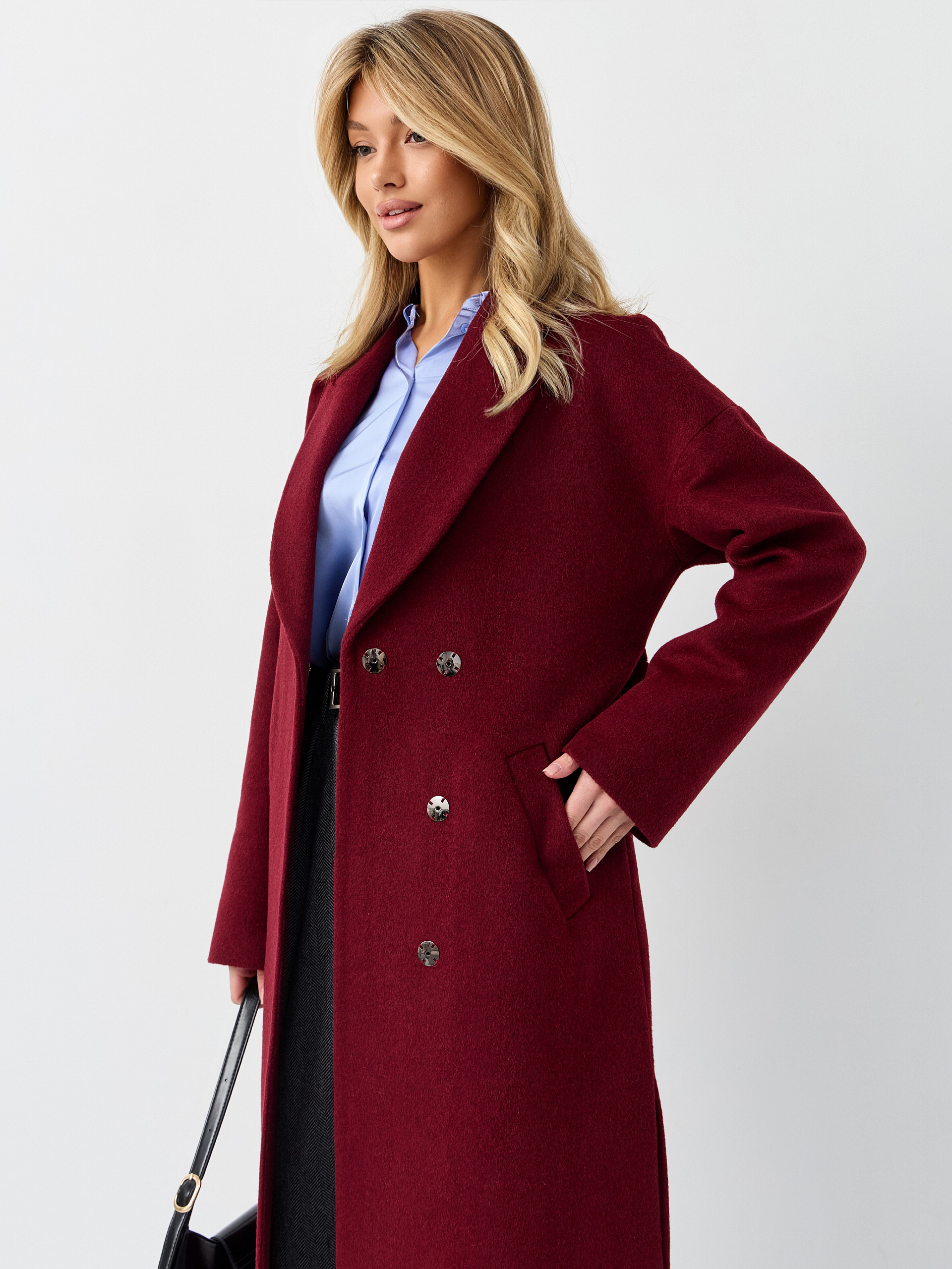 Пальто женское демисезонное 26820 (вино ворсовый)